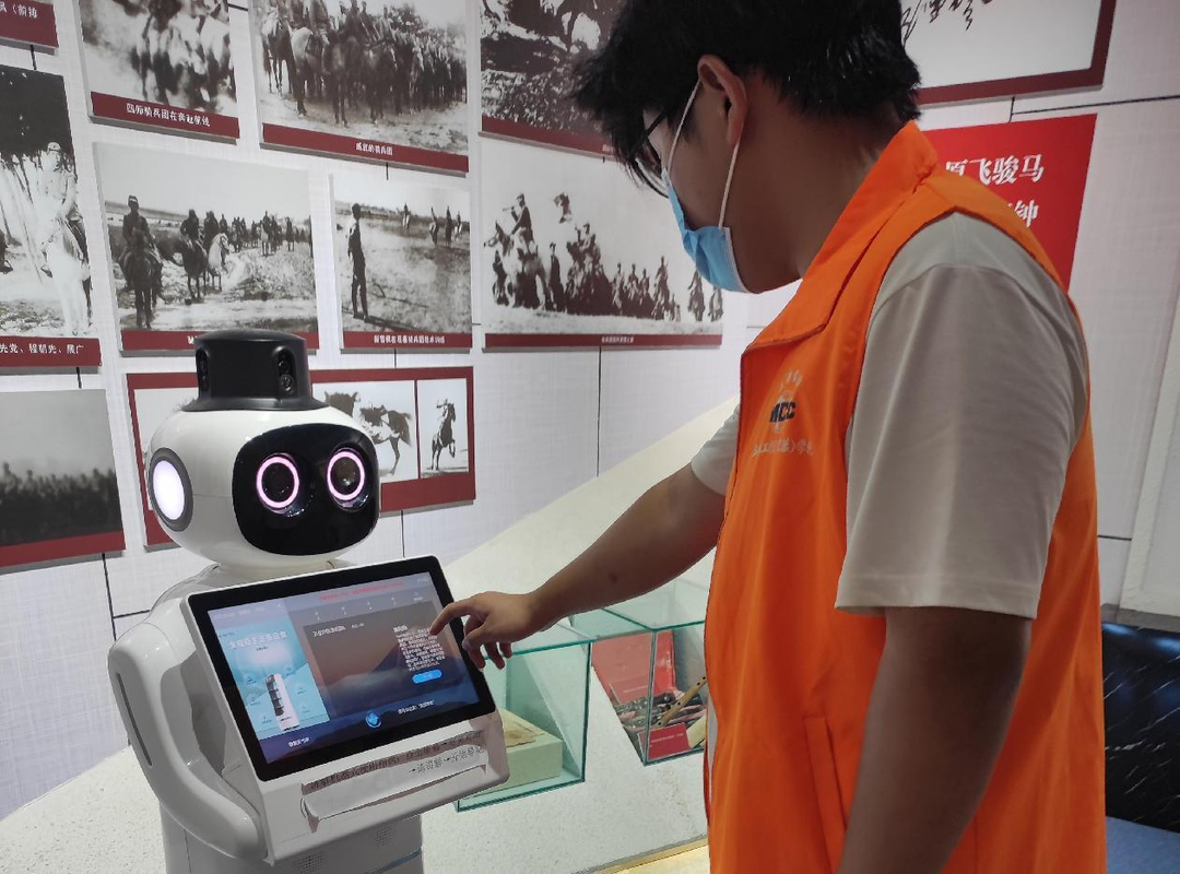 第二天,队员们馆内工作人员的带领认真学习馆内AI智能宣讲机器人的工作原理、操作方法。掌握操作方法后,队员们开始借助智能宣讲机器人为前来馆内参观的游客进行宣讲,并进行现场互动。