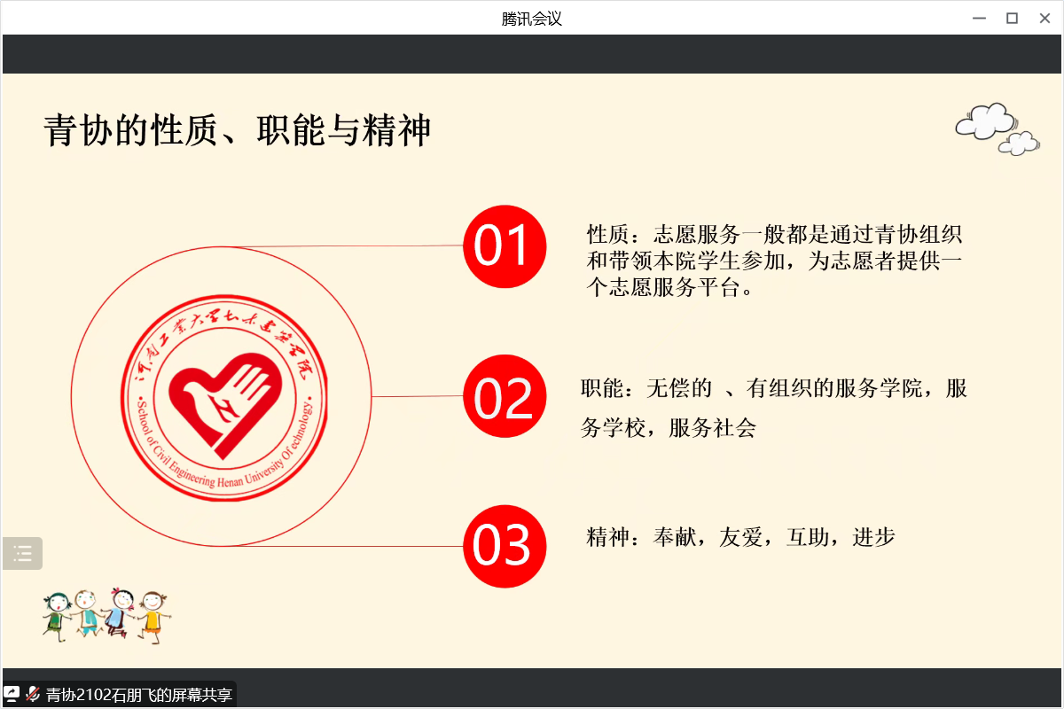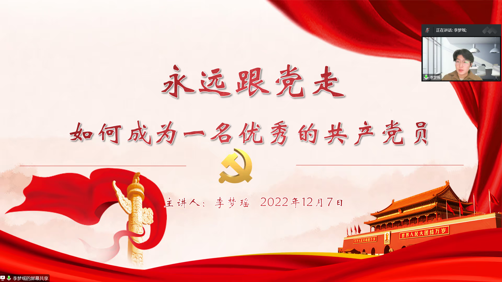 为进一步提高团员思想理论水平,培养社会实践能力,促进团学工作顺利开展,成人漫画 于12月7日开展以“学思践悟二十大 志愿服务凝合力”为主题的第十九期团学骨干培训班第二次团课。此次团课以新时代青年如何成为一名优秀的共产党员以及青年志愿服务为主题,通过线上的方式进行,由成人漫画 学生团委副书记李梦瑶、青年志愿者协会副会长石朋飞主讲。团委学生会2021级部分学生代表及全体2022级全体班级团支委成员参加了团课。