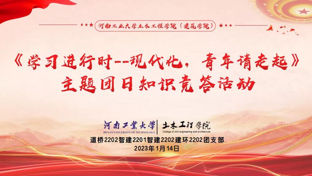 各团支部积极响应号召,团日活动形式多样。主题团日活动“活动进行时”包括“知识竞赛抢答进行时”、“理论教育学习进行时”以及“回顾总结体会进行时”三个方面。其中,道桥2202班、智建2201班、智建2202班、建环2202班团支部联合举办了《学习进行时——现代化,青年请走起》主题团日知识竞答活动。竞赛开始前,各团支部成员认真学习了党的二十大精神相关内容,以充分的准备、昂扬的斗志践行了活动“以赛促学、以学促行”的初衷。参赛者们全神贯注,题目播放,大家机智抢答、团结协作,”抢答进行时”环节更是竞争激烈,将现场氛围推到高潮。比赛结束后,大家踊跃讨论有关新时代赋予青年的使命与担当等问题。学院团委副书记闫静茹老师参加了此次活动,她嘱咐所有参会的同学们:一是练就学习实践上的“真功夫”,做本领过硬的“筑梦人”;二是树立“青春有我”的奋斗之姿,做追逐梦想的“追梦人”;三是扛起“强国有我”的青春之责,做百年复兴的“圆梦人”。同学们纷纷表示,要继承与发扬伟大建党精神,听党话、感党恩、跟党走,增强敢于担当、勇于拼搏的使命感和责任感,为祖国的发展贡献青春力量。