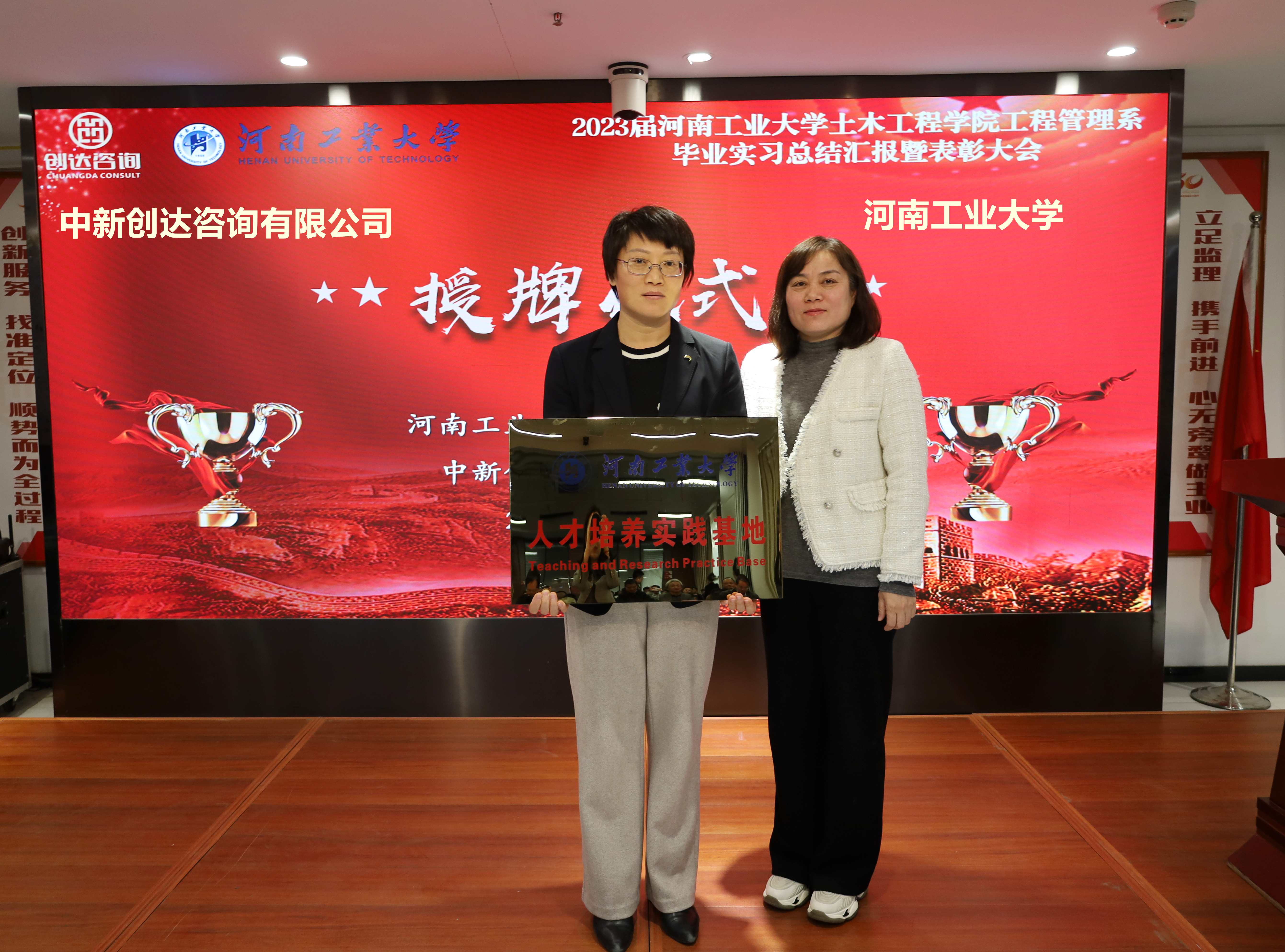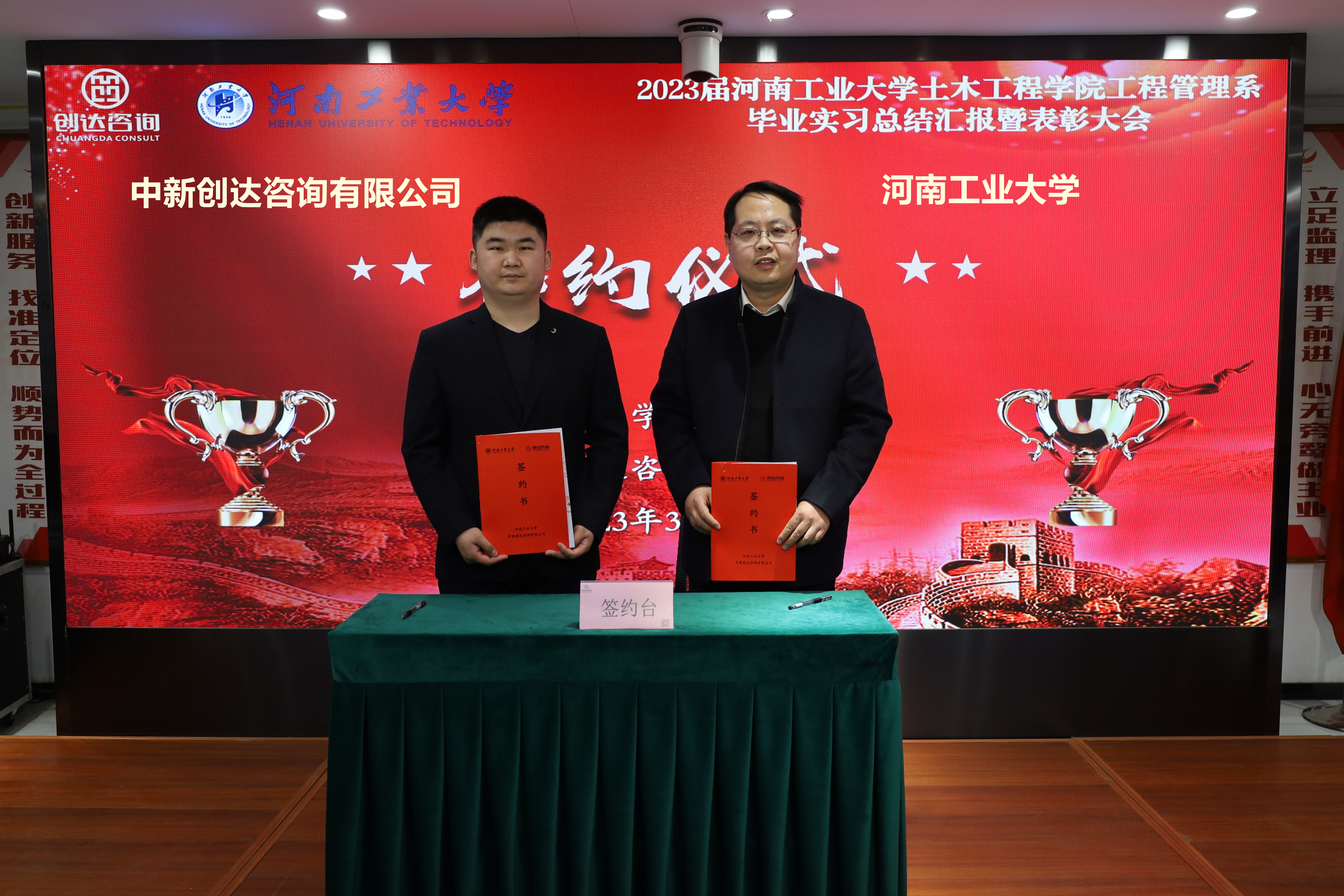 近日,成人漫画 与中新创达咨询有限公司共同举行了工程管理专业2023届毕业实习表彰大会,并签订了实践教学基地协议。学院党委书记王影、院长丁永刚、副院长黄海荣、工程管理系主任董润润、中新创达咨询有限公司执行董事徐希萍、党支部书记董高峰及有关指导老师和全体实习生参加会议。