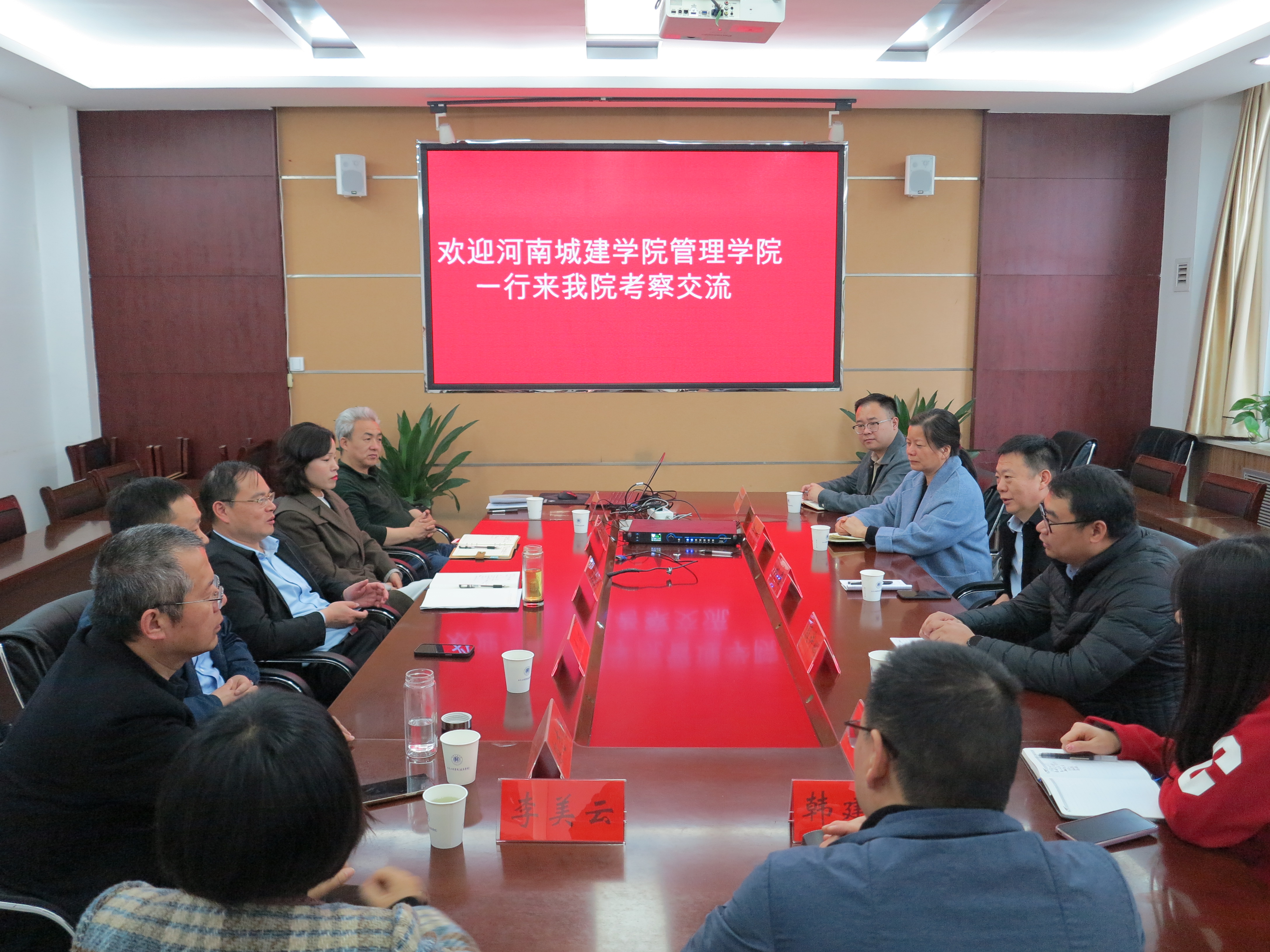 4月3日上午,河南城建学院管理学院副院长刘雷一行5人来成人漫画 开展调研交流。会议在32220会议室进行,学院副院长黄海荣、实验中心主任庞瑞、工程管理系主任董润润和工程管理系部分专业教师参加了交流会。