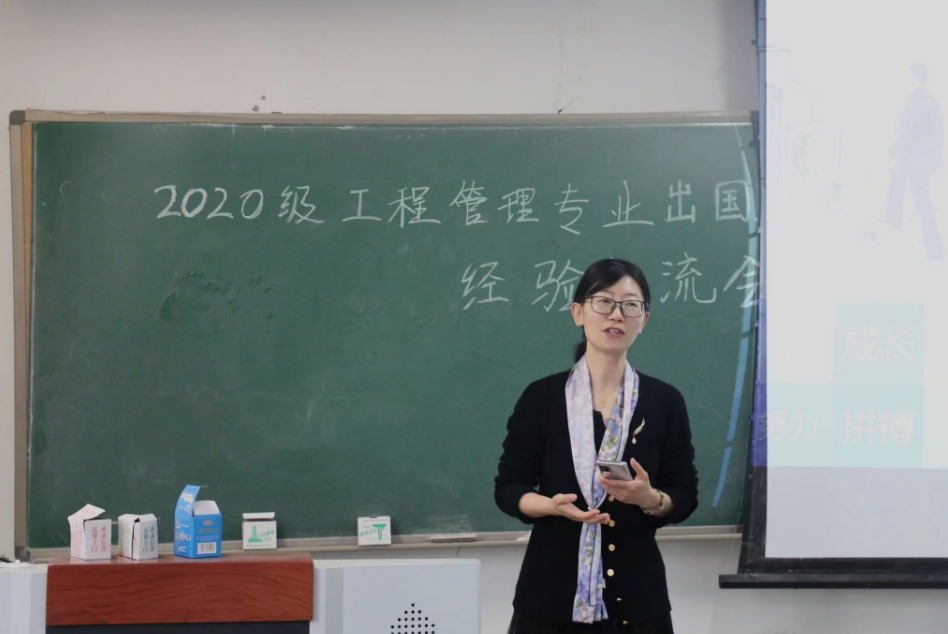 在32502教室召开2020级工程管理专业出国、保研、考研及就业经验交流会。学院党委副书记、副院长杨阳、工程管理系主任董润润、工管2019级优秀学生代表、工管2020级全体学生参加会议,交流会由杨阳主持。