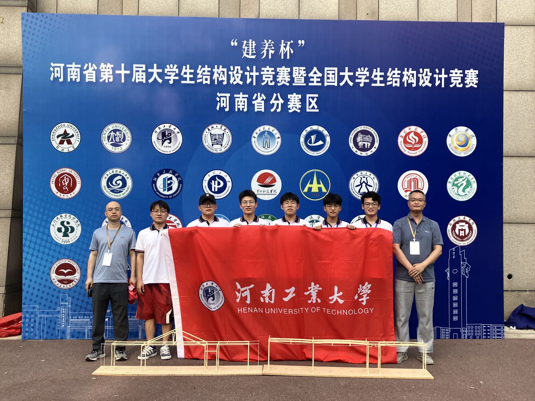 在学院的鼎力支持下,我校派出的两支参赛队伍3个月来积极备赛,师生同心协力,对参赛作品不断打磨、精益求精,高质量实现组合桥梁模型的设计和搭建。最终,两个队伍的作品在强手如云的参赛队伍中大放异彩,双双荣获一等奖,崔璟、咸庆军老师指导的工大1队勇夺本科组第一名,并获得了最佳结构分析奖;陈家豪、陈俊旗老师指导的工大2队获得本科组第二名。