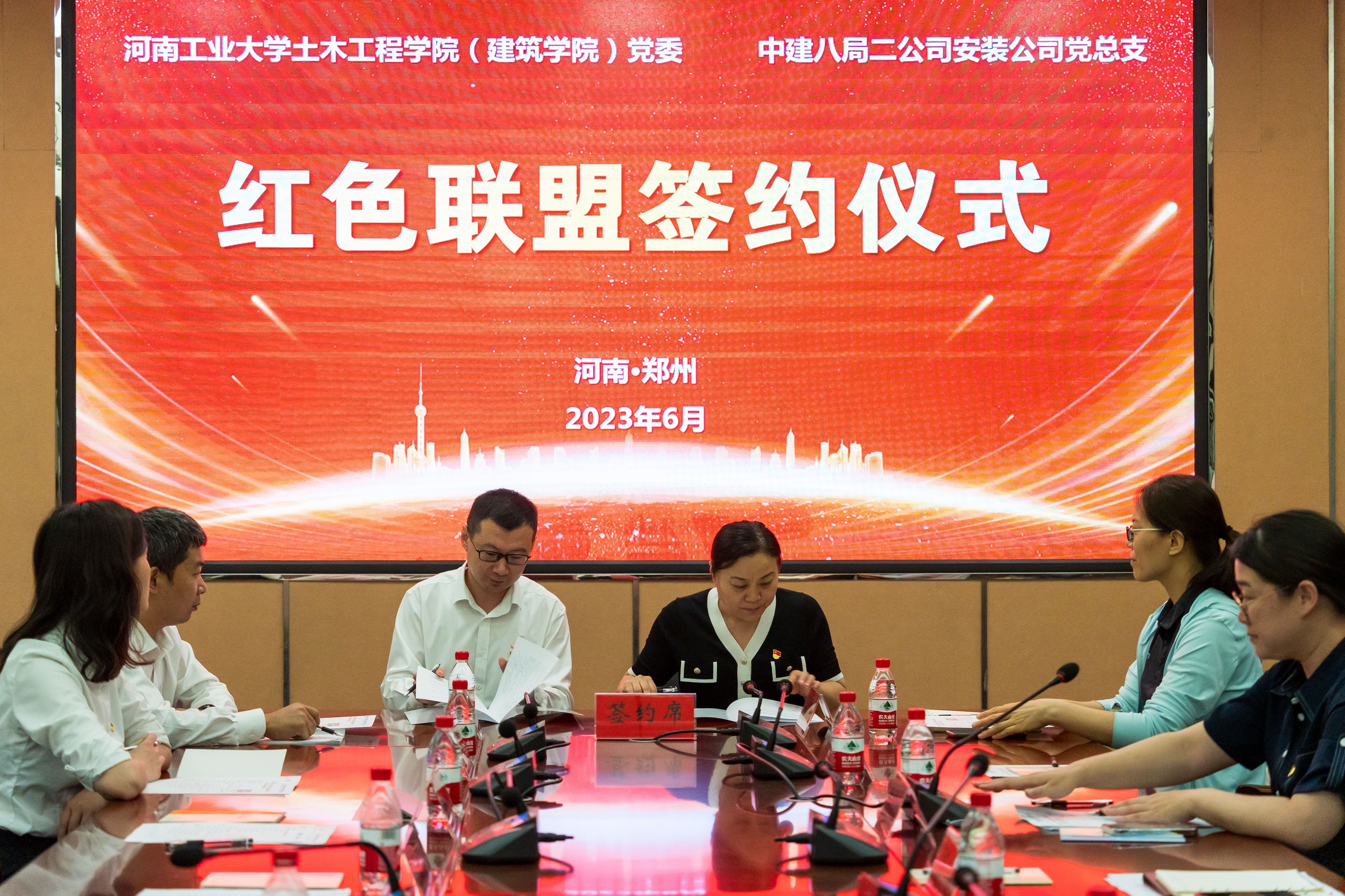与中建八局二公司安装公司在32208会议室举行校企党建联建活动暨“红色联盟”签约仪式。中建八局二公司安装公司工会主席、总会计师王东伟,公司中原区域负责人、党支部书记胡小波,中原片区党支部组织委员、校友代表王禹东等一行9人,来到成人漫画
