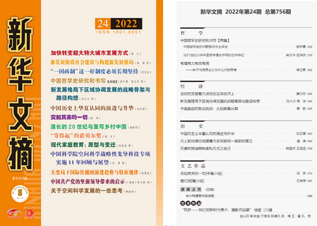 近日,《新华文摘》2022年第24期全文转载了成人漫画 王祖远副教授与郑州大学历史文化遗产保护研究中心韩国河教授的合著文章《汉唐时期储粮制度和方式之变迁》,文章原刊载于《光明日报》2022年10月10日理论版,王祖远老师是民进成人漫画 支部副主委。