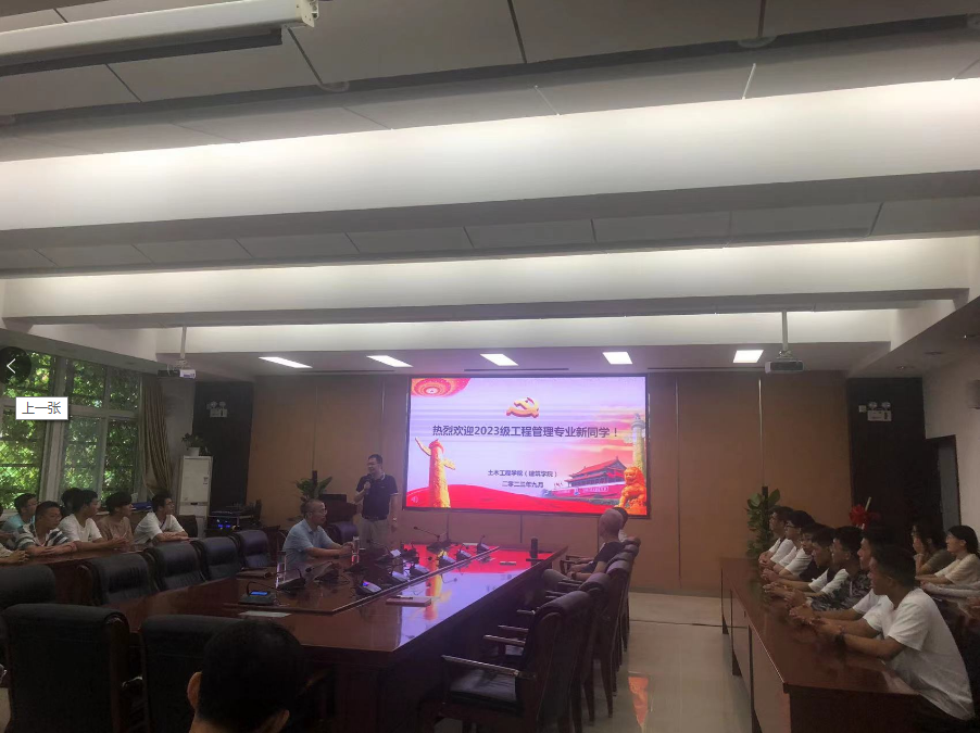 在32208会议室举行2023级工程管理专业新生入学教育会议。学院副院长静行、工程管理系主任董润润、工程管理系专任教师郭志涛、段永辉、杨海鹰、杨明宇、赵阳以及工程管理专业2023级全体新生参加会议,会议由系主任董润润主持。