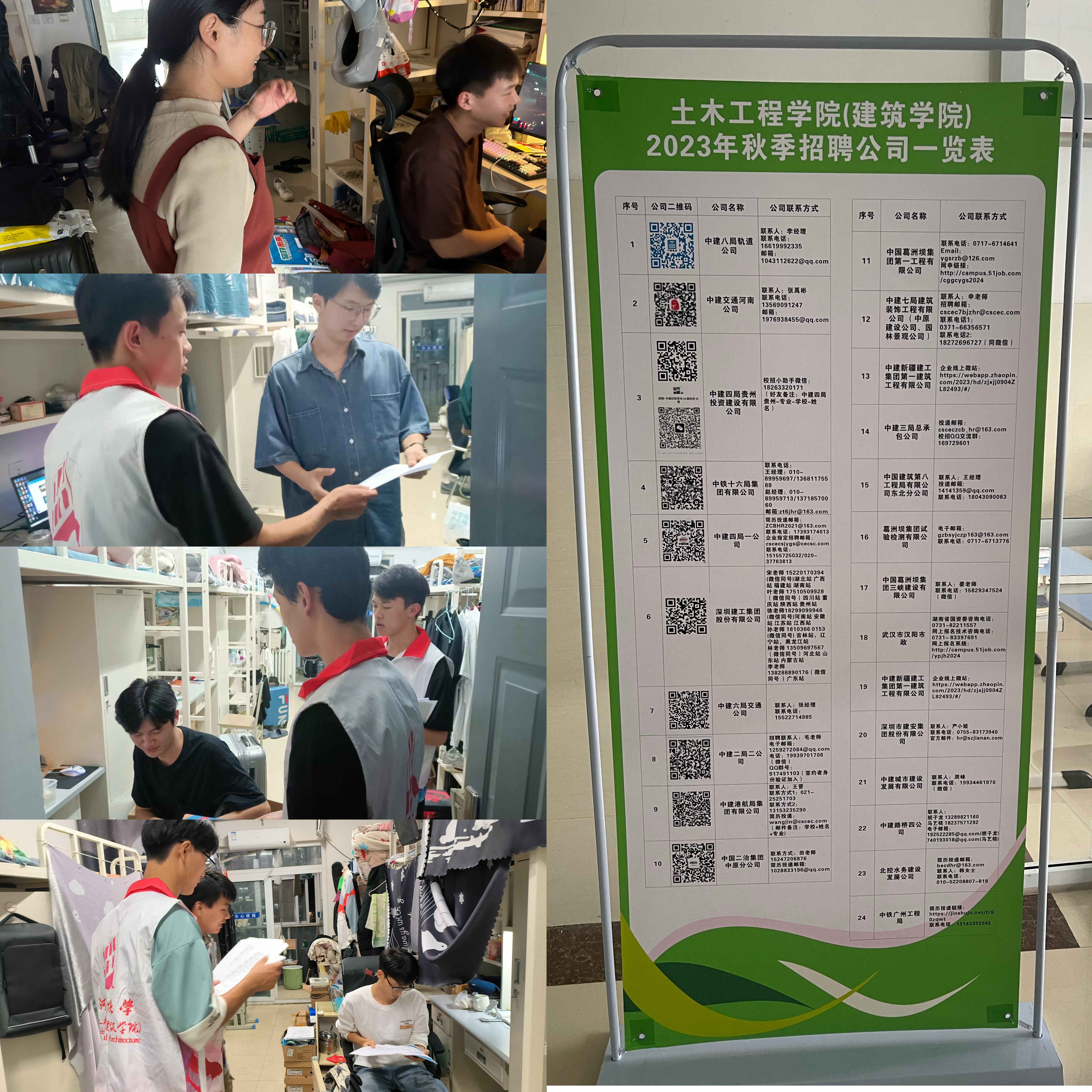 结合当前毕业生就业形势及学生实际就业情况,为解决学生在求职过程中遇到的实际问题,针对毕业生中出现的慢就业、懒就业现象,李保云带着学生助理来到学生宿舍,敲开学生宿舍门,上门开展就业指导和宣传工作。他们详细解答了同学在就业中遇到的各种问题,叮嘱同学们重视求职黄金期,通过学校就业信息官网、就业创业中心公众号、学院就业信息平台、微信群等多种渠道积极寻找就业岗位,详细了解用人单位需求、提升工作能力。他们将学校、学院近期的招聘信息印制成宣传单,送达每个毕业生手中,提醒同学们关注用人单位宣讲会信息,有选择性的参加宣讲会,了解行业动态、熟悉招聘流程、锁定求职目标,在求职中做到“知己知彼”。此外,学院还以易拉宝形式将用人单位信息放置在宿舍自习室门口,方便毕业生随时查看并及时联系招聘单位,实现顺利就业。