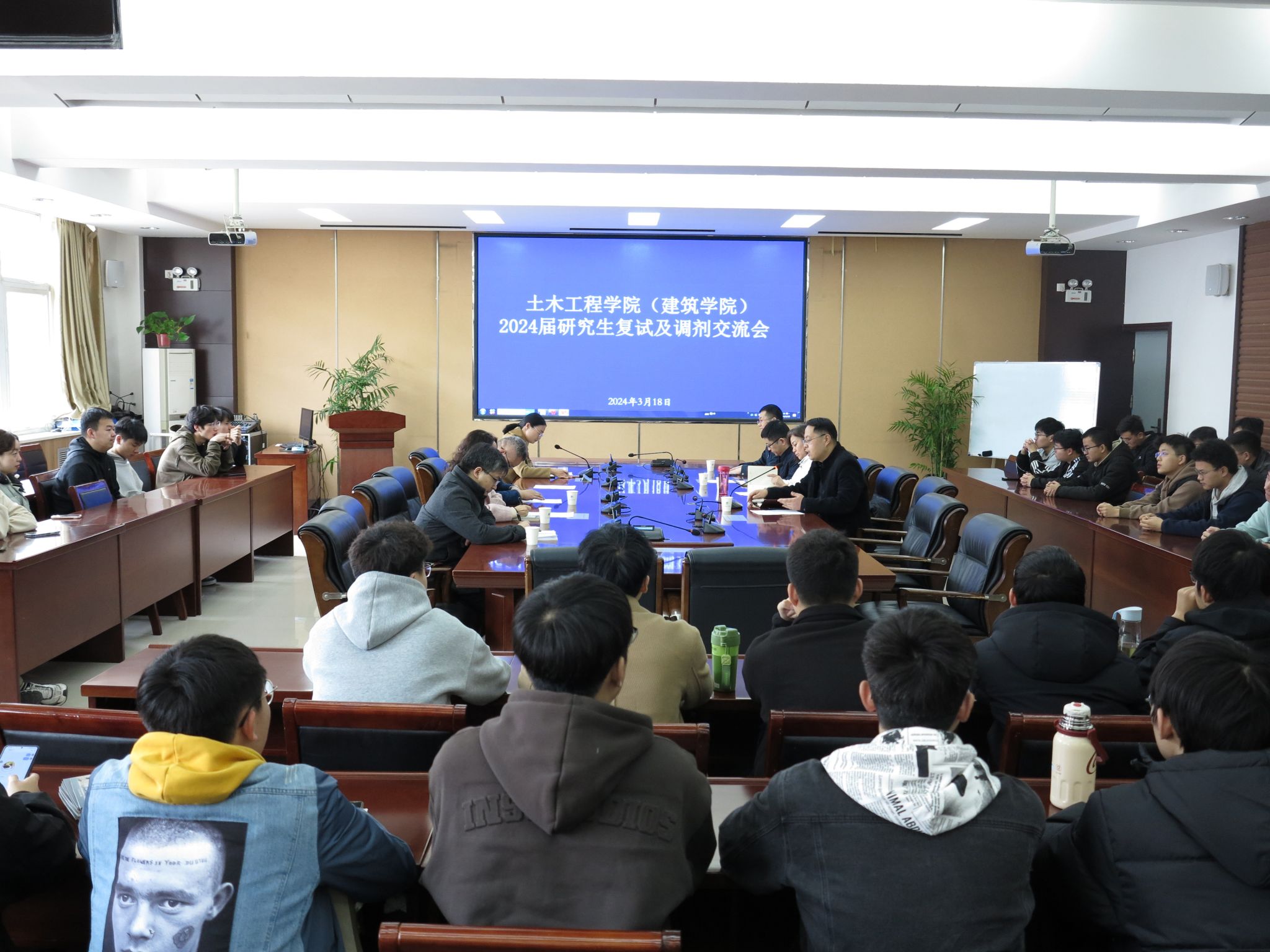 在32208会议室召开2024届研究生复试及调剂交流会。学院党委书记王影、院长丁永刚、党委副书记兼副院长杨阳、副院长静行、郑德乾,导师代表及全体考研过线学生参加会议。会议由学工办主任李保云主持。