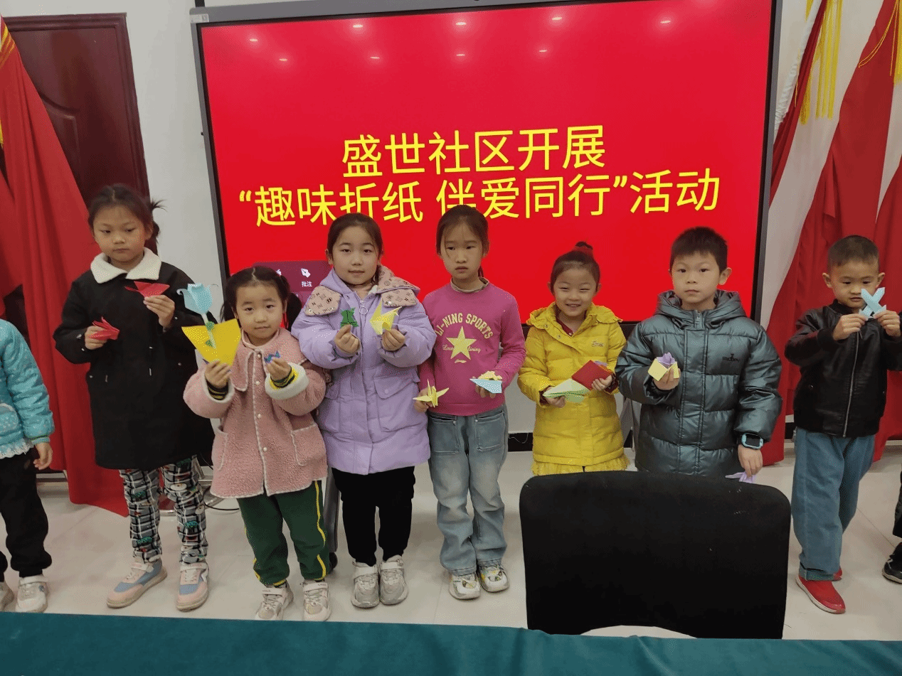 青年志愿者协会成员来到盛世社区,与社区人员共同开展了“趣味折纸,伴爱同行”活动。活动伊始,志愿者通过自我介绍让孩子们认识自己,随后志愿者耐心的向孩子们介绍折纸的基本技巧,平凡的纸张在小朋友手中翻折,扭转,变成栩栩如生的动物,花朵和飞机。此次活动不仅教会了小朋友折纸技巧,还让他们知道了如何用折纸表达爱,用行动传递爱。