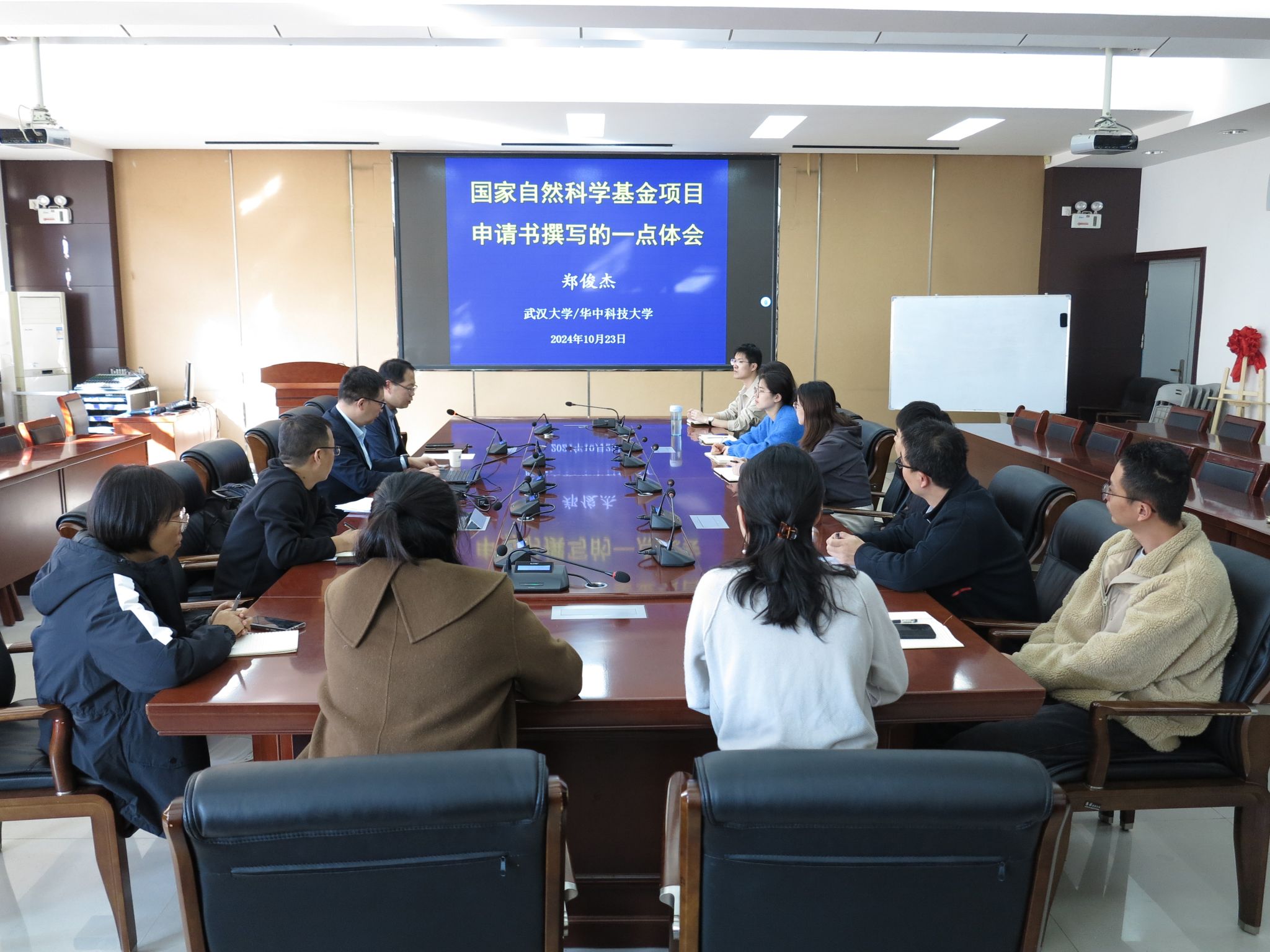 2024年10月23日下午,武汉大学/华中科技大学二级教授、博士生导师、教育部“长江学者特聘教授”郑俊杰应邀在成人漫画 32208会议室为成人漫画 师生作《国家自然科学基金项目申请书撰写的一点体会》专题讲座。院长丁永刚,学术副院长徐志军以及20多位教师参加了讲座,讲座由丁永刚主持。