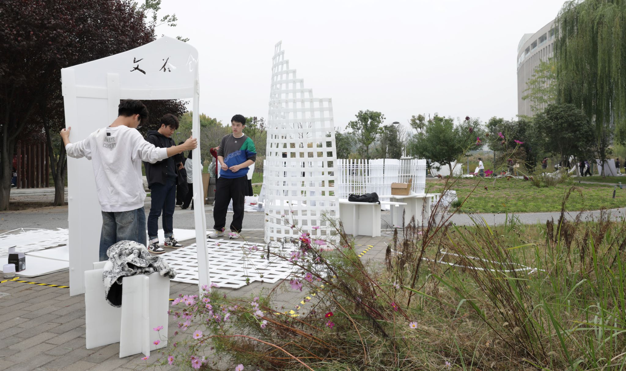 中心景观湖畔沿岸设计并搭建一组师生休息场所。希望通过比赛激发同学们对中国粮食文化的兴趣和热爱,从而保护好、传承好、弘扬好博大精深的中国粮食文化。
