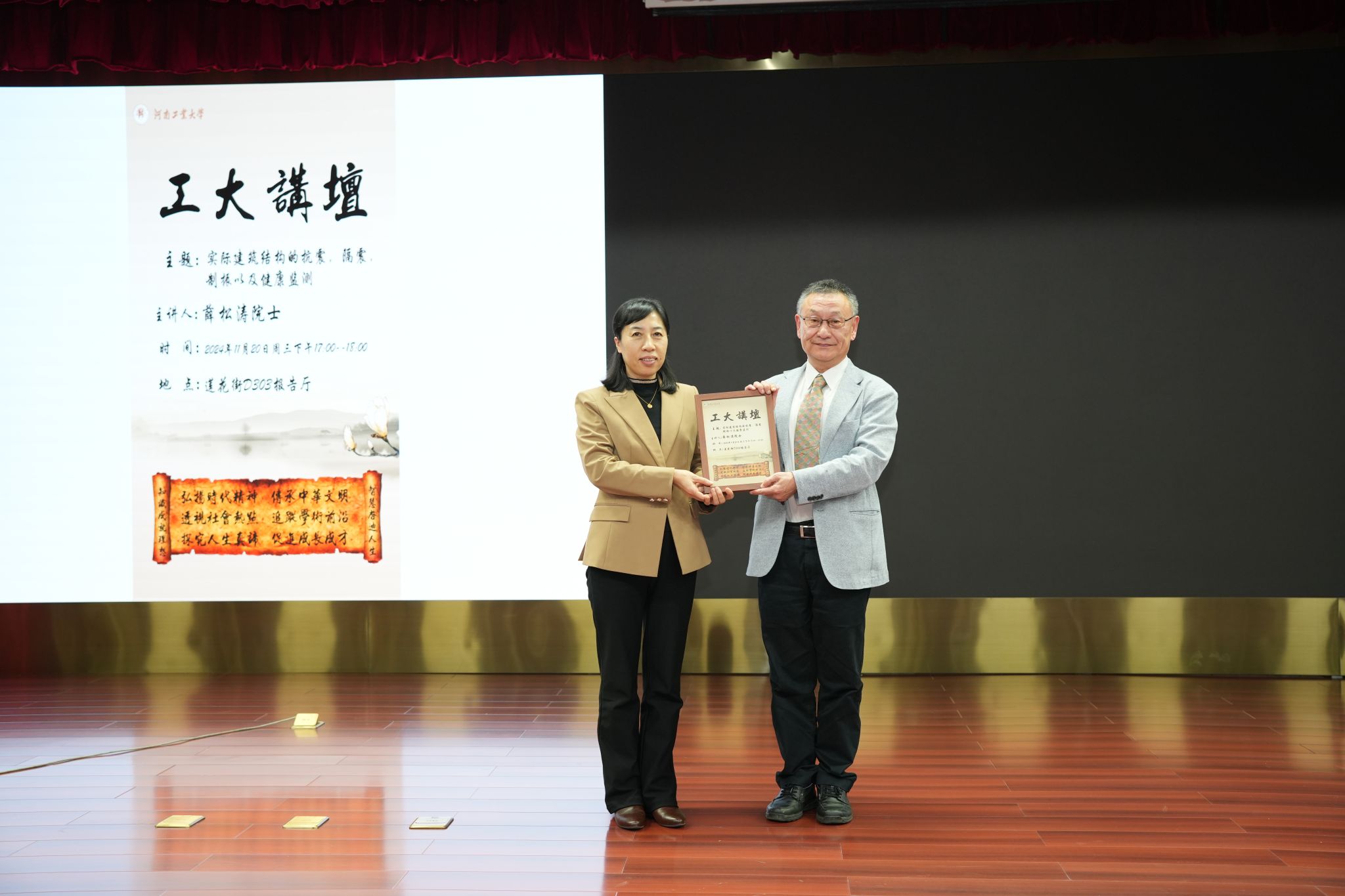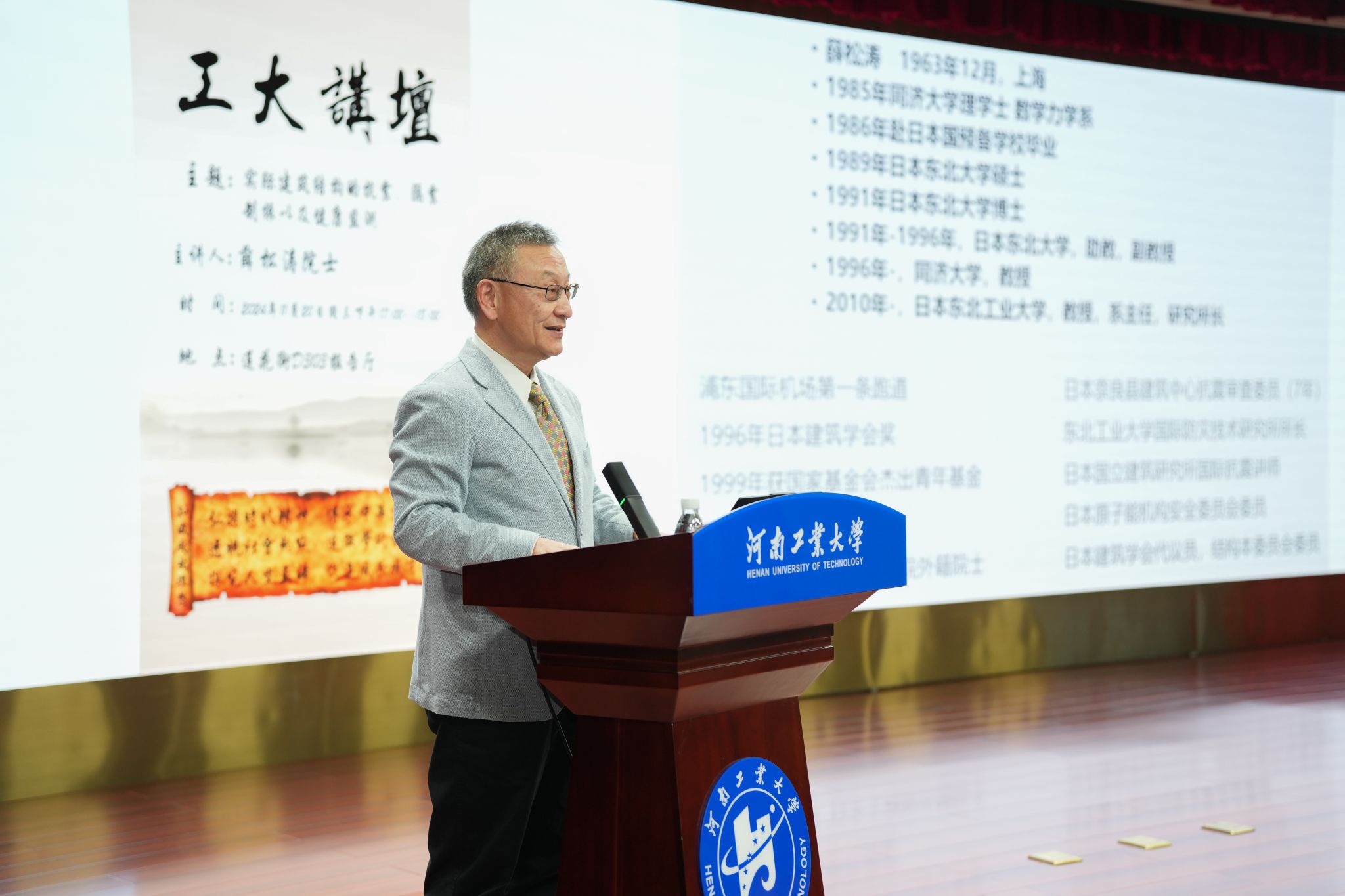 承办的第292期、第293期工大讲坛在莲花街校区学术报告中心D303报告厅成功举办。中国工程院院士吕西林教授、日本工程院外籍院士薛松涛教授受邀做客工大讲坛,分别以“以工程需求驱动的研究和实践”、“实际建筑结构的抗震,隔震,制振以及健康监测”为主题,为300余名师生做精彩学术报告。讲坛分别由校长吴智深、副校长白艳红主持。