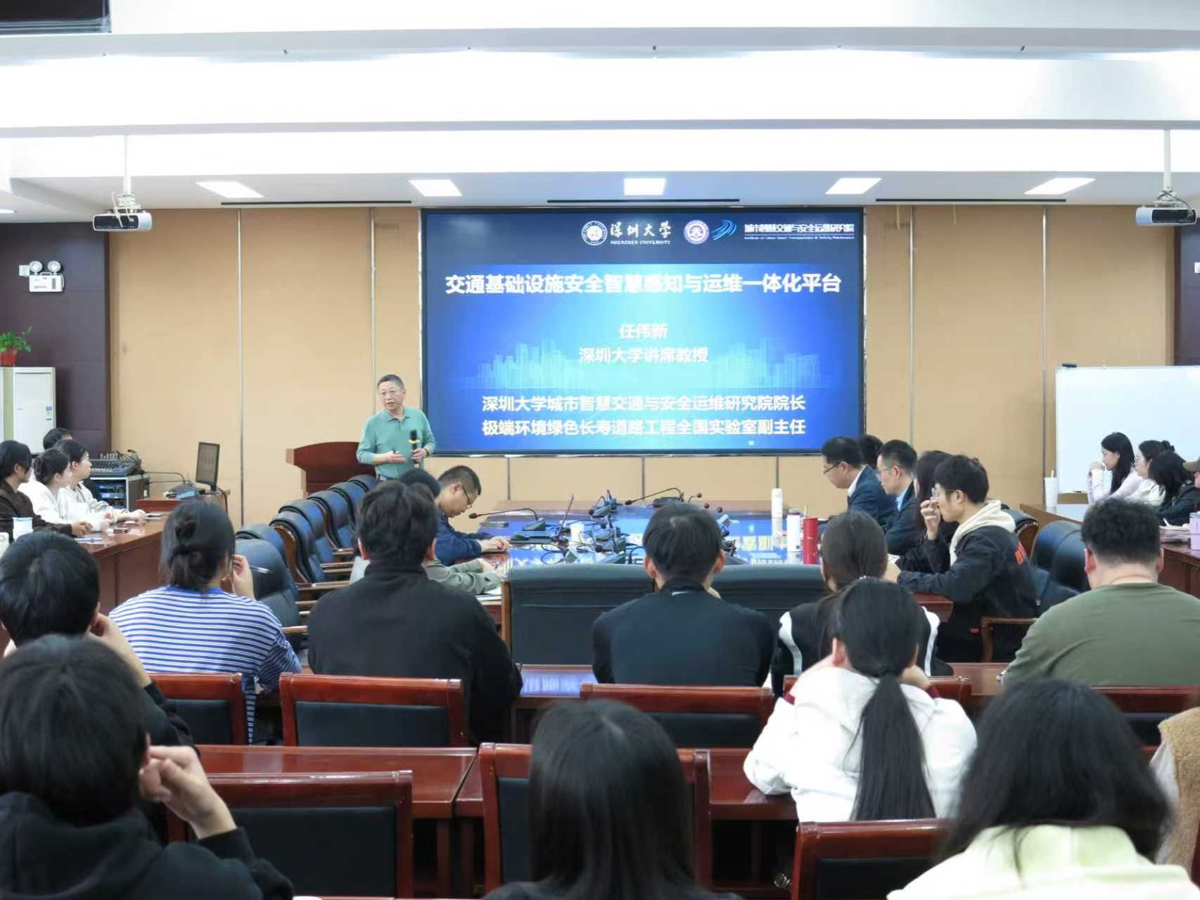 “学术创新年”工作规划,助力师生群体精准把握智慧交通技术内核,提升科研创新能力、赋能科研创新实践,2025年10月15日下午,学院邀请深圳大学教授任伟新在32208报告厅作了题为“交通基础设施安全智慧感知与运维一体化平台”的学术报告。报告会由学院院长丁永刚主持,学院师生100余人参加了本次报告会。