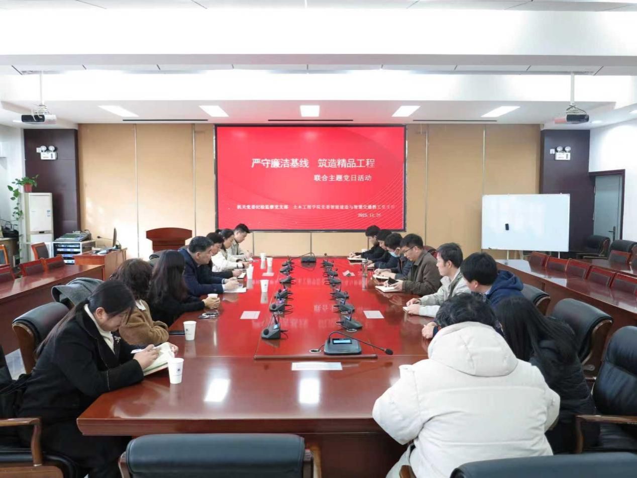 党委智能建造与智慧交通党支部在32208会议室联合开展“严守廉洁基线 筑造精品工程”主题党日活动。活动由纪检监察党支部书记王洪江主持。