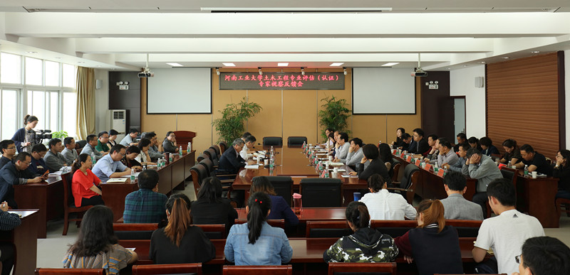在三天的考察过程中,专家组全面了解、考察我校及土木工程专业的办学思想、办学特色和办学条件,参观了粮食博物馆、校图书馆、基础实验室、资料室、土木建筑实验中心;参观了土木工程专业建设成果展;视察了土木工程专业教学管理情况,审阅了教学计划、教学档案、学生试卷和实习报告等成果及自评报告支撑材料;观摩了理论课的授课情况,走访了土木工程专业2018届毕业设计;视察了中建七局和河南工大设计研究院两个实习基地。此外,专家组成员还分别召开了学生代表、基础课教师、专业课教师、校院管理人员及毕业校友、用人单位代表座谈会。